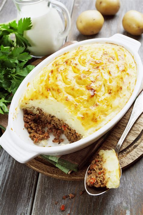 - Préparation: Faire revenir l'oignon et les carottes hachés dans du beurre. Ajouter la viande hachée et cuire jusqu'à ce qu'elle soit dorée. Pendant ce temps, cuire les pommes de terre à l'eau bouillante jusqu'à ce qu'elles soient tendres. Écraser les pommes de terre avec la crème fraîche, le sel et le poivre. Mélanger la viande à la purée et parsemer de fromage râpé. Gratiner au four quelques minutes.